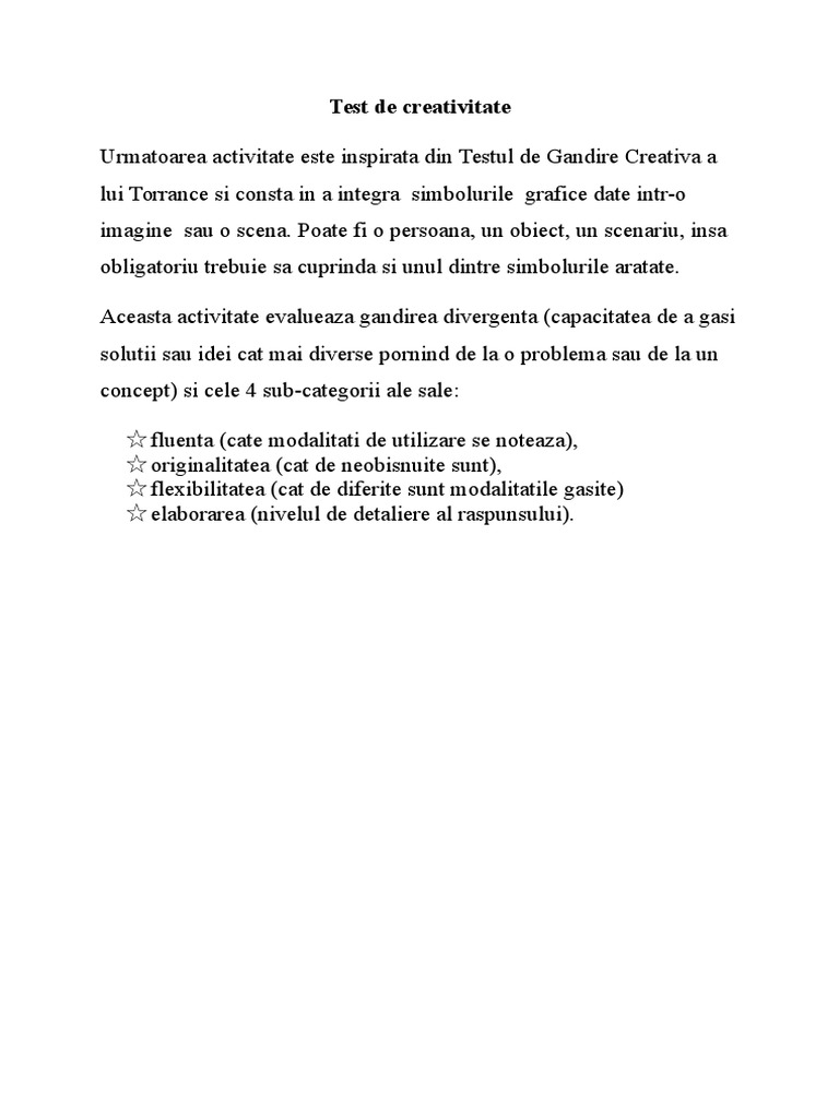 Test De Imaginatie Si Creativitate Doc Document